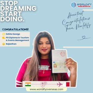 With all my heart, I thank the entire Worldify team for supporting me throughout my journey. Iโ€™m glad I chose them, as they guided me at every step and made the process easy. Special thanks to Dr. Heena, Mr. Nirmal, and Ms. Kajal for their incredible support. Iโ€™ll always be grateful.